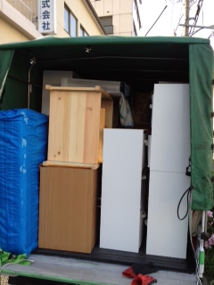 今回は、冷蔵庫、ダンボール箱、衣装ケース、布団、袋物、冷蔵庫、テレビ台、テーブル、シングルハンガーとそこに掛っている衣類、座イスの順に積込みを。テレビ、プリンター、レコーダーは助手席に。積込みには約60分、移動してから下ろし作業は約20分で完了。「すごく安く済んで助かりました」と、嬉しい一言。若いのにしっかりしているN様、こちらこそご利用ありがとうございました。